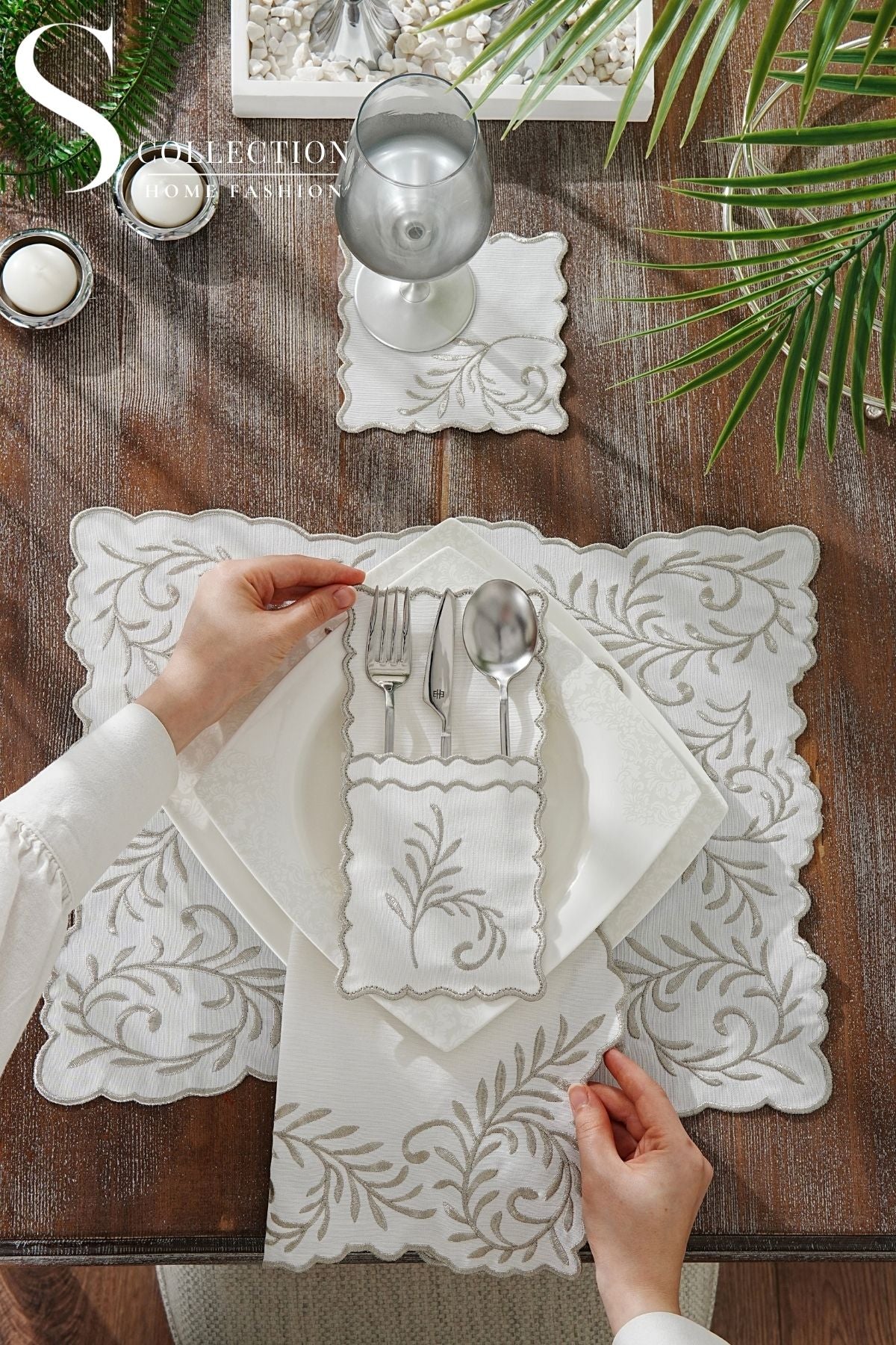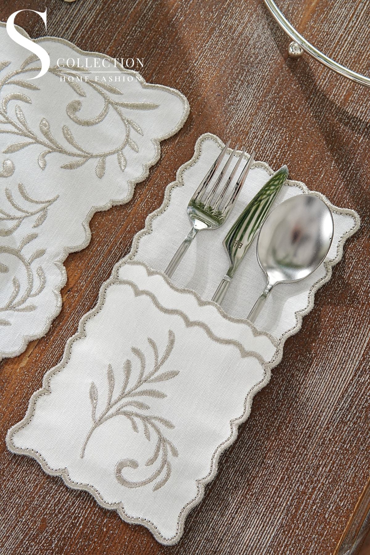 • ٦ جيوب ادوات مائدة مطرزة ١٢ * ٢٥ سم