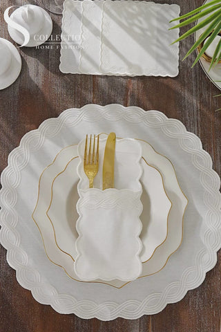 طقم مفارش سفرة - تصميم أوشن بريد - تطريز اوف وايت - قماش مقاوم للماء - ٦ اشخاص - ٢٤ قطعة - طقم كامل